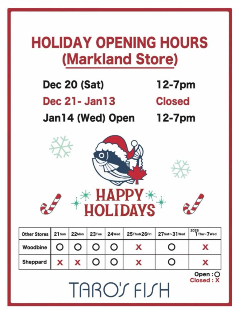 No in-store orders on Dec. 24 & 31.